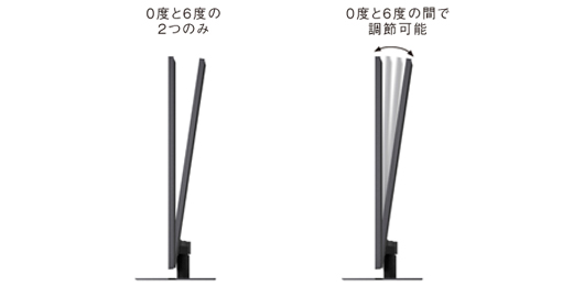 * 32V型は、0度と6度の2つのみ。22V型は0度-6度の間で調整可能