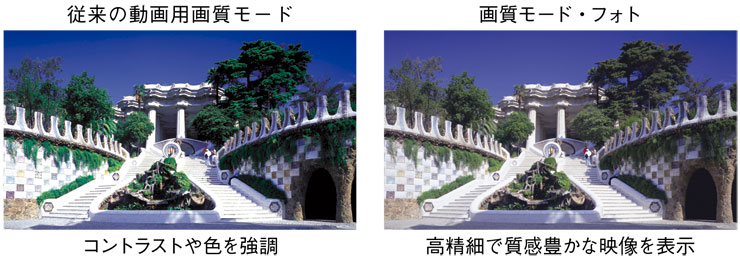 本来テレビは動画に合わせて画質を調整しています。「フォト画質モード」は静止画専用に、自然であたたかみのある画質に調整した画質モードです。