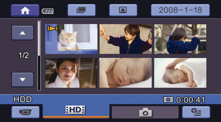 リモコンにリンクメニューボタンが搭載された機種では、対応のハイビジョン“ハンディカム”やPCの操作が可能。たとえば、“ハンディカム”を接続してリンクメニューボタンを押し、「ビデオカメラ」を選ぶと“ハンディカム”の再生インデックス選択画面を表示。あとはテレビを見ながら、見たいシーンの選択や早送りなどの操作がテレビのリモコンで快適に行えます。
