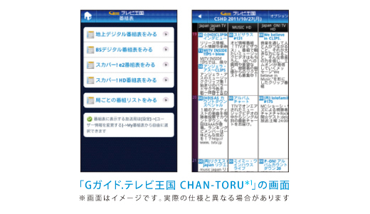 XperiaやiPhoneといったスマートフォンやタブレット、パソコンで、外出先から録画予約ができるウェブアプリ「Gガイド.テレビ王国CHAN-TORU」(*1)とも連携が可能になります。録画予約する際に録画先として「外付けUSB HDDの選択」ができるほか、外付けUSB HDD内の「番組タイトルの確認・消去」などを行えます(*2)。