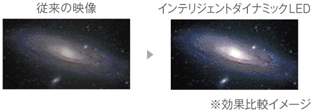 演算処理能力の向上により、入力信号をよりきめ細かに解析し最適なバックライト制御を実現しました。明るい部分は、必要な明るさを残しつつ、従来まで再現が難しいとされていた暗い映像においては、暗い部分は本来の黒を表現することで、より豊かな階調性と奥行き感を再現しました。