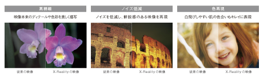 地上デジタル放送やブルーレイ、ネット動画など、さまざまな映像をリアルタイムに解析。その映像に合わせ最適な処理を行うことで、さらなる高画質化を図り、より自然でリアリティー豊かな映像を再現します。