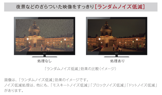 さまざまな映像を高精細に解析し、シーンに適したノイズ低減処理を行い、鮮鋭感のある映像を再現します。