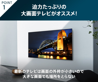 テレビを壁掛け・壁寄せすれば、テレビ台を置く必要がないため、大画面でもお部屋を広く使えます。
