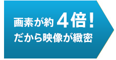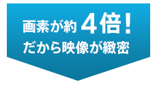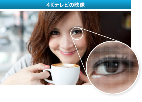 4K映像はフルハイビジョンの4倍、約829万画素の高解像度。大画面で見ても細部まで高精細(キメ細やか)な画質を実現し、フルハイビジョンでは表現しきれなかった質感やディテールまでリアルに再現します。