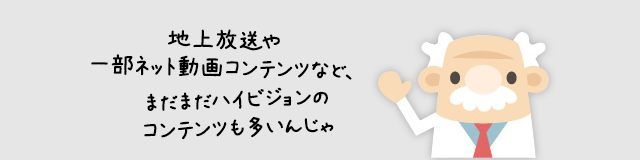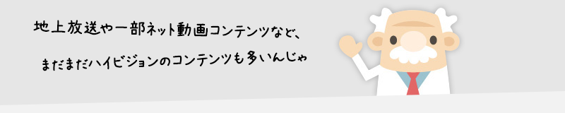 地上デジタル放送や、ネット動画コンテンツなど、まだまだハイビジョンコンテンツは多いです。