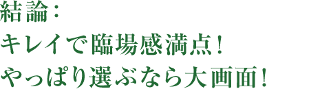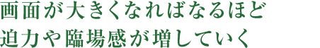 大画面になればなるほど、目の前がテレビの映像で覆われることになり、視界が映像で占められるようになっていきます。すると目で見ている視界と近くなっていき、より映像にリアリティーを感じるようになります。まるで映像の中のヒトやモノが目の前にあるかのように感じ、没入感も高まるのです。