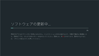 - ・アップデート中、テレビの電源を切ったり、コンセントを抜いたりしないでください。故障の原因になります。