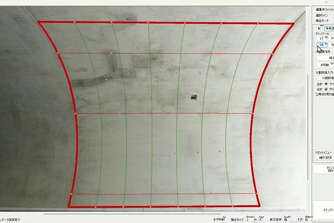 茨田:道路点検では、国土交通省の方針により、点検作業時に新規技術の複数活用が求められています。新規技術を用いることで、省人化や業務効率化を図るのが狙いです。こうした背景のもと、点検精度向上と経済性の両立を目的として当社が開発したのが、PDD(Photo Deformation Drawing)システムです。点検作業自体の新技術ではなく、ボトルネックとなっていた変状記録作業の効率化を図るシステムで、簡単に言うと、チョーキングされたトンネルの半面をカメラで撮影し、その撮影画像にオルソ補正をかけて図面化していくというものです。ですから、使用するカメラ・レンズ選定においては、高解像度であること、超広角撮影が可能なことなどが重要なポイントとなりました。