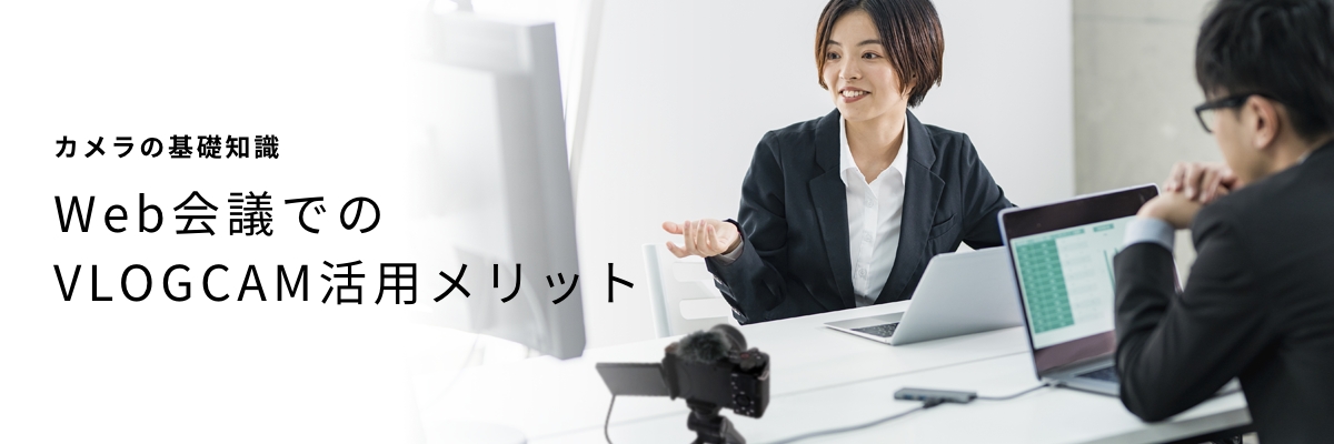 通常のWeb会議ではPC内蔵カメラやテレビ会議専用のWebカメラの画質や音質でストレスなくコミュニケーションできることも多いようですが、ウェビナーやお客様への大事なプレゼンをWeb会議で行う場合は、さらに高品質で明るく印象的な画質とクリアな音質が求められます。そんなときは、VLOGCAMをPCの外付けカメラとして使うのがおすすめ。ソニーは、ズームレンズ一体型のVLOGCAM「ZV-1/ZV-1G」とαシリーズのVLOGCAM「ZV-E10/E10L」をラインアップしています。このページではVLOGCAMをWeb会議に使うことのメリットと使い方についてご紹介します。