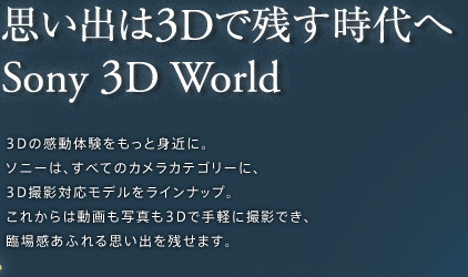 3D“ハンディカム”3D“ブロギー” は共に、裸眼3D対応の液晶を搭載。3Dメガネがなくても、カメラ本体で3D動画観賞を楽しめます。