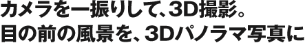 ソニー独自の「スイングパノラマ」技術を応用した「3Dスイングパノラマ」。カメラを一振りする間に高速連写した大量の画像から、左右の目の視差を計算しながら、右目用と左目用の2枚のパノラマ画像を合成します。