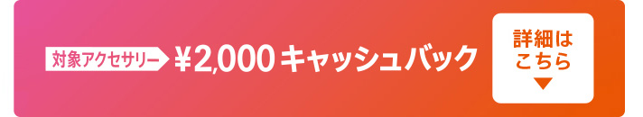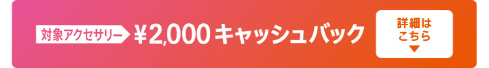 ●対象アクセサリーのキャッシュバックのご応募は、日本国内に在住し、日本国内の銀行口座を持つ個人のお客様に限ります。