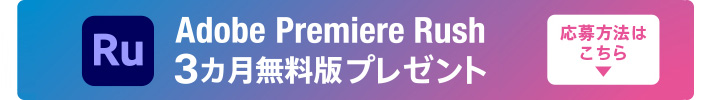 ●Adobe Premiere Rush 3カ月版無料プレゼントのご応募は、日本国内に在住している個人のお客様に限ります。