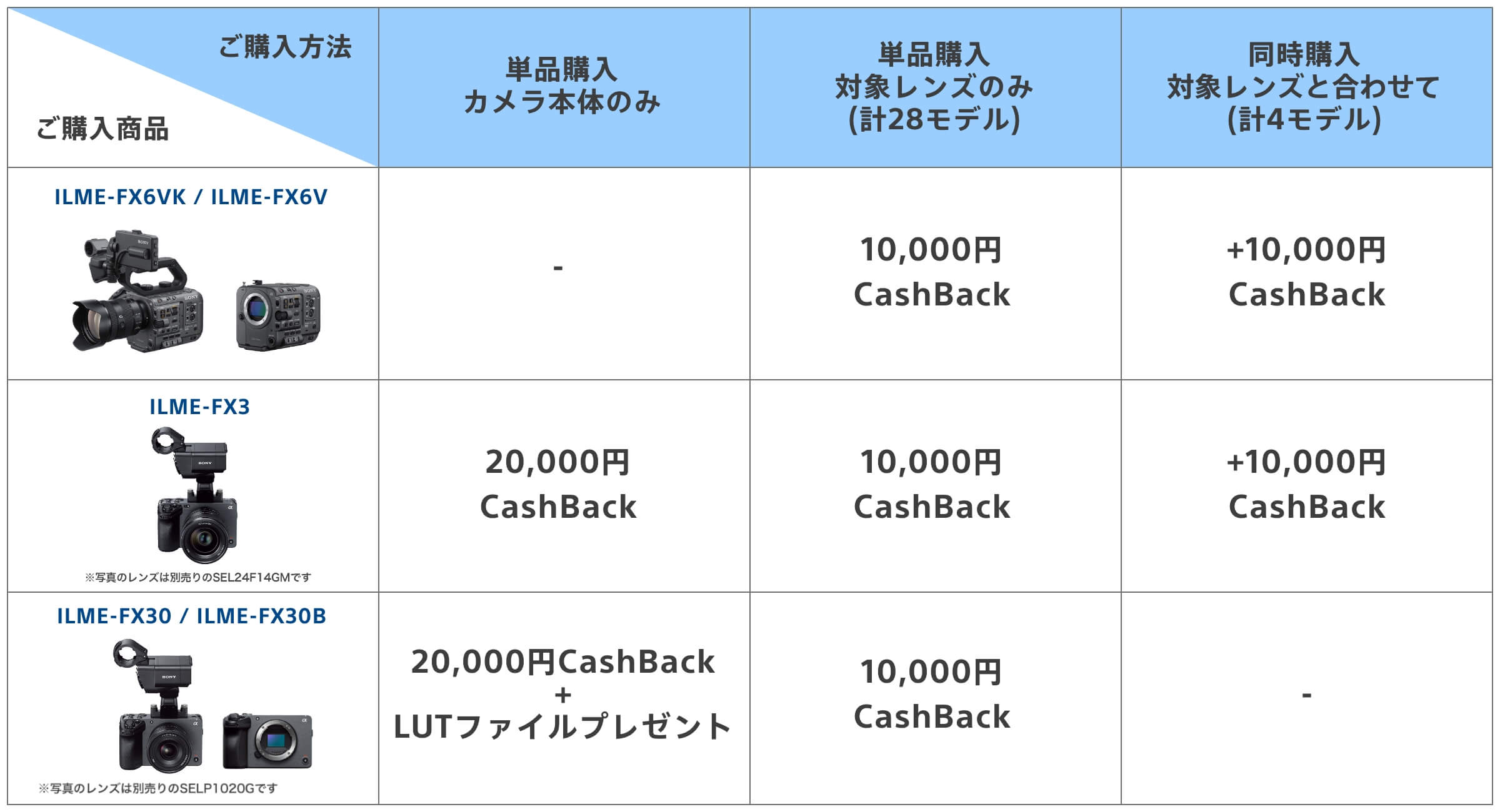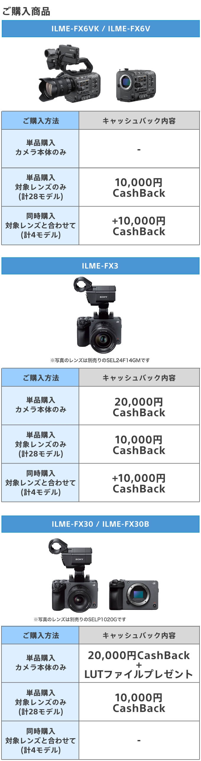 ※対象ボディ1台に対して、対象レンズを複数種類同時購入した場合はいずれかのレンズが対象になります。