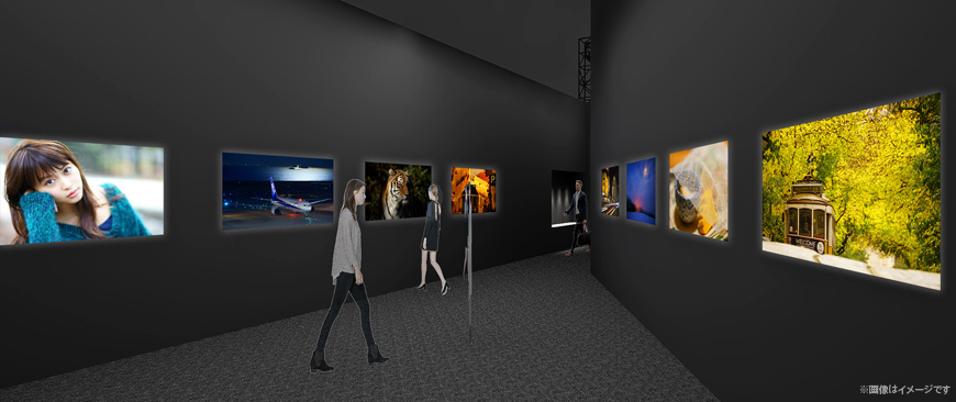4Kテレビに投影して展示。ソニーだから味わえる写真の楽しみかたを、