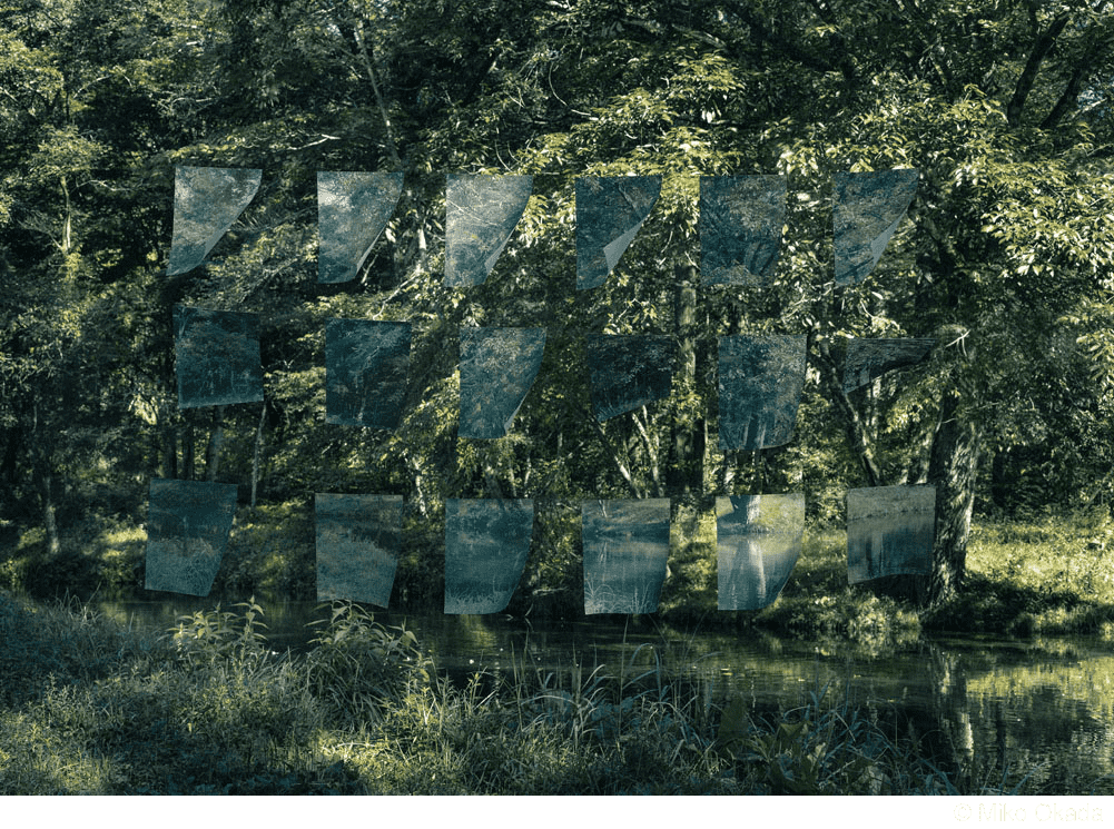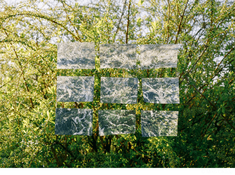 自分の見るという行為、その空間との認識や経験を確かなものにするために、そこで見た景色をもう一度その場所で露光するような過程を作った。身体的な経験は見ていたものを確かなものにした。一枚一枚が光や風の影響を受け、写真を吊るした糸を消すことで生まれる僅かなずれが錯覚を引き起こし新たなイメージが加わる。イメージたちが私の想像を超えその空間に新たな広がりを見せることを期待している。