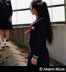 数名を撮影したところで、制服が未完成な彼女らを外圧から守るさなぎにみえてきました。その制服は、彼女らの押し黙る表現を助けます。みる側に一旦考えさせることを保留にさせる力があるからです。でも私たちはその「制服を着た少女」というイメージを容易にたどってはいけないはずです。彼女たちが戸惑ったように、私たちも戸惑わなければいけません。差し出されたイメージを心地よく受け入れたのでは、したたかに戦略を組みながら垂れ流される映像を見ていることと同じだからです。