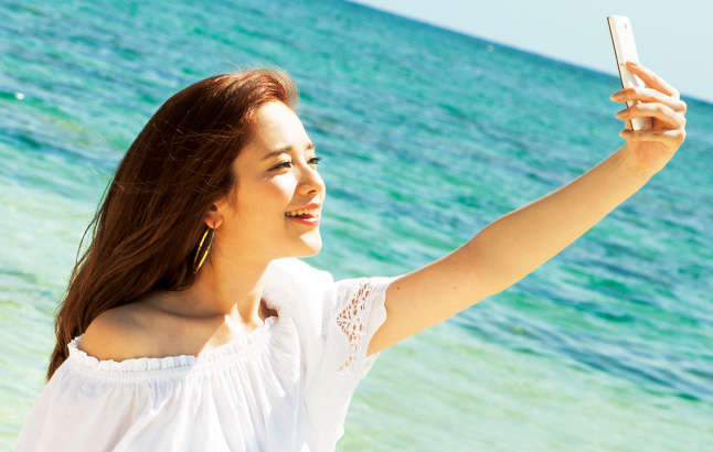 自分の姿と風景をともに撮影する新しい自分撮り写真。