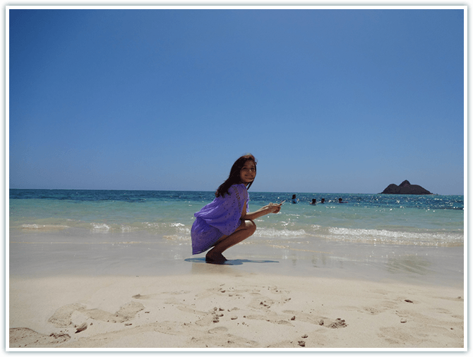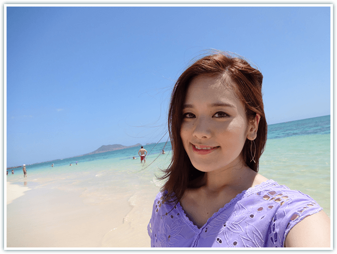 「ハワイアン・メイ ! に出演するために訪れたハワイ。滞在中は Xperiaを使って、感じたこと、思ったことのあらゆるものを撮りました。イベントやテレビ撮影でオフの時間はほとんどなかったけれど……。それでもハッピーでいられるハワイのパワーってすごい。中でも特別な思い出になったのは、この撮影で来たラニカイビーチ。”天国の海”と言われるビーチに、テンションもアップ!右上のキレイな浜辺の写真、私がXperiaで撮ったものなんですよ」 -MIWAKO