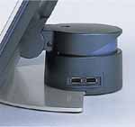 ディスプレイ前面上部の入力切り換えボタンに連動するUSB端子(2UP/2DOWNストリーム)をディスプレイ台座部分に装備しました。2台のパソコンを1組のUSB対応のキーボード・マウスで使用できます。なお、連動・非連動はOSDで選択できます。