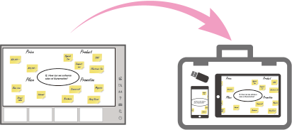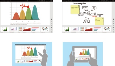 サッと簡単に手元のデバイスから資料を表示できて、話し合ったポイントはメモとして書きこむことで参加者みんなの共通認識となって討議が深まります。終了後には参加者に検討内容をシェアすることで、成果を着実に次回につなげることができます。