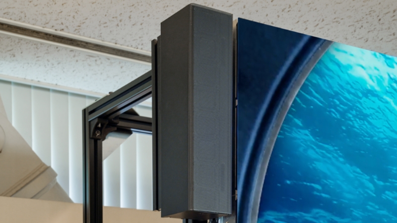 ディスプレイの両サイドに設置し映像を引き立てるラインアレイスピーカー『SLS-1A』