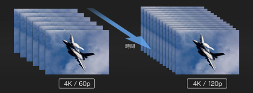 独自の画素駆動回路により、高速動画応答性能に優れており、最大120fpsのフレームレートで映像表示が可能です。 これにより、速い動きも非常になめらかに表現できます。sRGB比140%の色域、10bitの階調表現、120fpsにより、大型オブジェクトを実寸大かつリアルに再現できます。さらに、高コントラスト、高輝度、10bitの階調表現が組み合わさって得られる広いダイナミックレンジは、光の再現から影にいたるまでの陰影を高度に再現可能です。これにより、広大なキャンバスにまるで画を描くように映像を表現できるだけでなく、豊かな色調やなめらかな動画像の再現など、既存のディスプレイでは表現しきれない映像体験を可能にします。