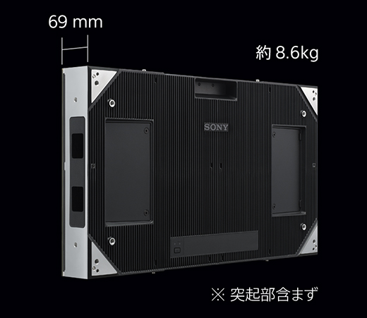 薄型・軽量の新開発キャビネットにより、奥行きや重量に制限のある場所への設置が可能になりました。加えてソニーオリジナルの電源設計により、信頼性の向上と低消費電力を実現しています。