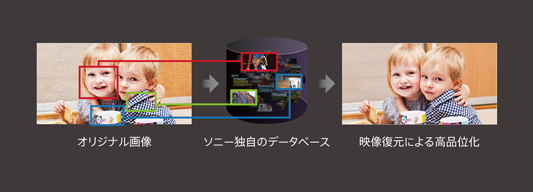 フレームごとに画像を分析し、ソニー独自の画像パターン化データベースを使用して再ピクセルマッピングを行います。