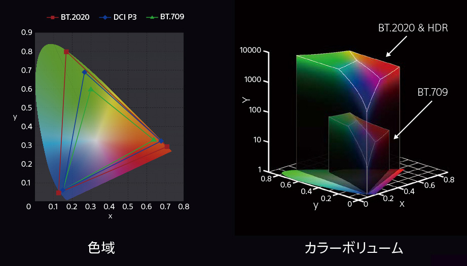 ※ ITU-R BT.2020の色域のRGB色度点は完全には包含されていません
