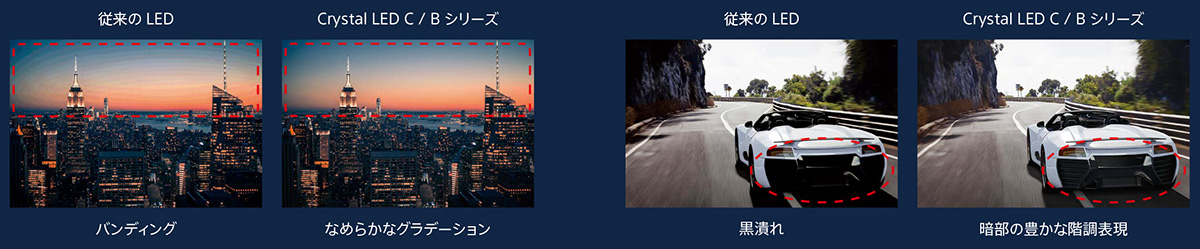新しい Crystal LED シリーズは、これまでのCrystal LEDで培った独自のLED 制御技術と、ソニーのテレビ「ブラビア(R)」で培った信号処理技術を融合させた高画質プロセッサー「X1(TM) for CrystalLED」を搭載しました。