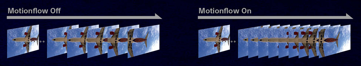 「モーションフロー(*)」機能により、⾼速動画応答性能に優れており、大画面における撮像ボケを低減し、高精細な映像をなめらかで自然な動きで表現可能です。