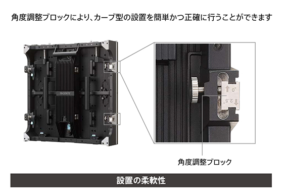 キャビネットの強度がさらに向上。また、専用の角度調整ブロック(*)を使用した機構を新たに採用し、 高精度なカーブ設置が可能です。