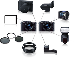 静止画撮影のみならず、動画撮影のためのアクセサリーも紹介。使用可能なアクセサリーの組み合わせも確認できます。