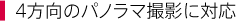 撮影方向は、上下左右の4方向に対応。旅先で出会った広大な景色や、目の前にそびえ立つ高層の建築物なども、そのままの迫力で1枚のパノラマ写真に収められます。