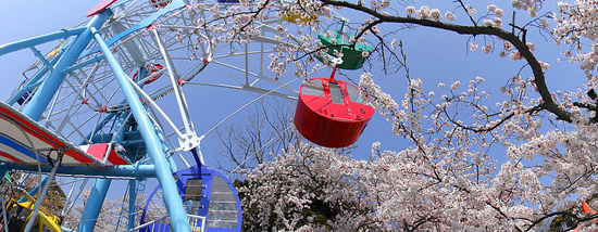 桜の自然な色合いと、観覧車のポップな色合いの対比を狙った作品。パノラマ撮影で、見たままの印象をそのまま1枚に収めることができました。