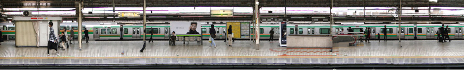 列車に乗って平行移動しながら、駅のホームを撮影してみると、面白いパノラマ写真に仕上がりました。