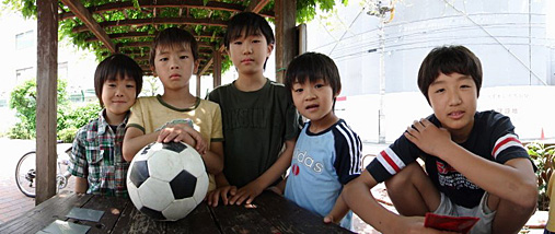 テーブルを囲む子どもたちを撮影。近い距離でも、スイングパノラマなら臨場感たっぷりの1枚を写せます。