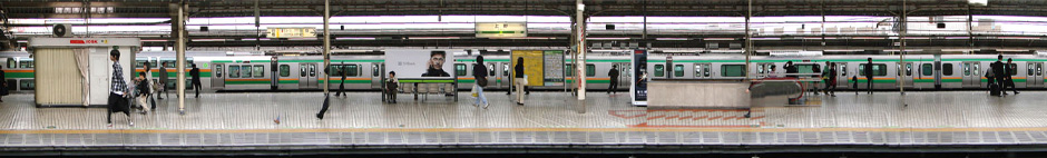 奥行きがあるシーン(この時で言うと、ホームとその奥にある風景)では視差があるため、うまく合成できない場合があります。そこで、なるべく奥行きがない場所を選んで、構図を考えました。また、ドアの窓越しに撮影するので、キズなどのない窓を探して撮影しました。
