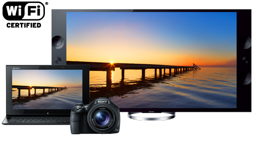 アクセスポイント経由でカメラとパソコンをワイヤレス接続すれば、USBケーブル接続しなくても、写真や動画をパソコンに自動保存できます。また、ネットワーク対応テレビなら、カメラに保存された写真をワイヤレスで転送して、テレビの大画面に表示できます。