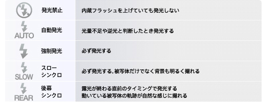 小型ボディには、暗い場所で自動的にポップアップするガイドナンバー6(ISO100換算・m,フル発光時)の内蔵フラッシュを搭載。フラッシュモードは、「自動発光」のほか、雰囲気のある夜景ポートレートが撮れる「スローシンクロ」、動きの軌跡を表現できる「後幕シンクロ」や「強制発光」「発光禁止」を搭載しています。
