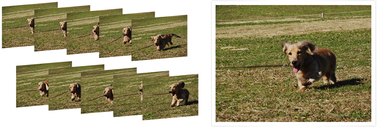 最大画像サイズ(18M)で秒間最大10コマの高速連写を実現(*)。メカニカルシャッターを使用した連写のため、高速で動く被写体を撮影する際でも、一般的な電子シャッター方式で起こる「ゆがみ」が発生しません。