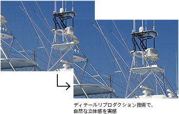 解像感を高めるだけでなく、見たままのより自然な描写を実現する「ディテールリプロダクション技術」を搭載。デジタル特有の輪郭強調を極限まで抑え、高い解像感による自然な立体感を実現。質感描写力が大幅に進化し、被写体の細部までリアリティーのある高画質で描き出します。