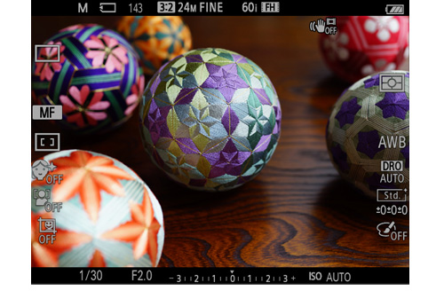 撮影に必要な情報は、0.5型のファインダー画面に表示されます。ファインダーから目を離すことなくカメラの設定操作ができるため、いつでも快適に撮影できます。