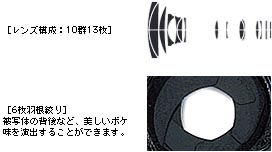 また、非球面レンズ2枚を含む10群13枚の贅沢なレンズ構成を採用。収差を最小限に抑え、シャープな高画質を実現します。