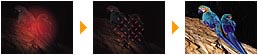輝度ノイズを除去し、精密機器など平らな質感と高解像度の両立が要求される撮影に有効なクリアルミナンスNRと、色ノイズを除去し、空など色が平坦な部分の描写に効果を発揮するクリアカラーNRを搭載。この2つのノイズリダクションを自動判別して処理。より自然な美しさを実現します。