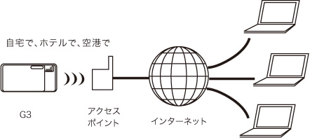 無線LAN規格(IEEE802.11b/g)に対応したアクセスポイント。「ルータ」などのネットワーク機器にアクセスポイントの機能が内蔵されている場合もあります(「無線LANルータ」などの名前で販売されています)。