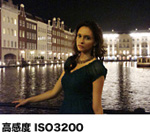 高感度ISO3200の高い受光感度を生かし、夜景や暗い室内の撮影でもフラッシュを発光せずに、背景の様子やシーンの雰囲気まで残せます。さらに、高感度で発生するノイズは「クリアRAW NR」で低減。また、高感度による高速シャッターで、被写体が動く「被写体ブレ」も防げます。