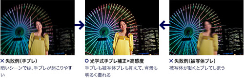 ズーム撮影時に心配な「ブレ」を防止。ダブルでブレない、光学式手ブレ補正×高感度ISO3200
